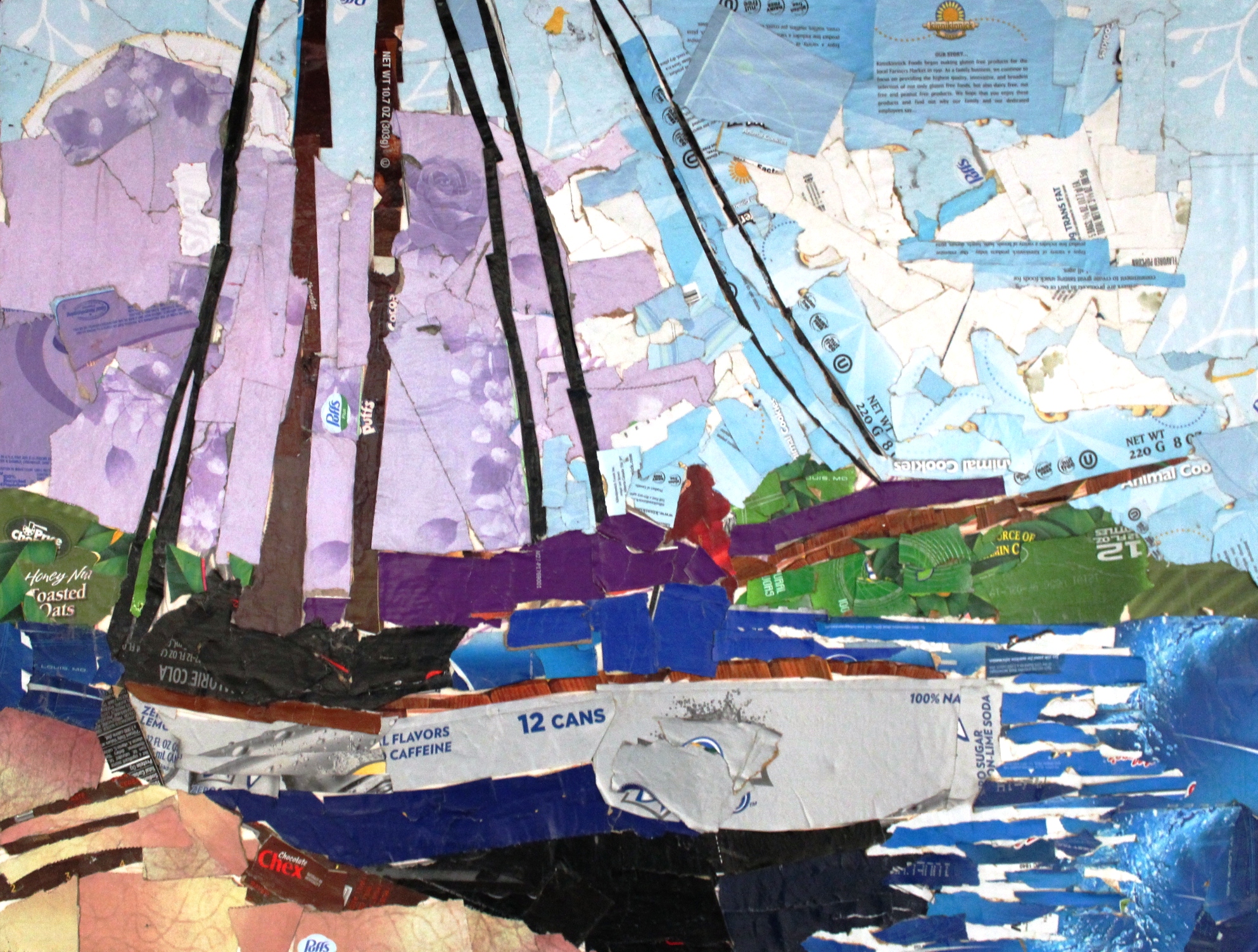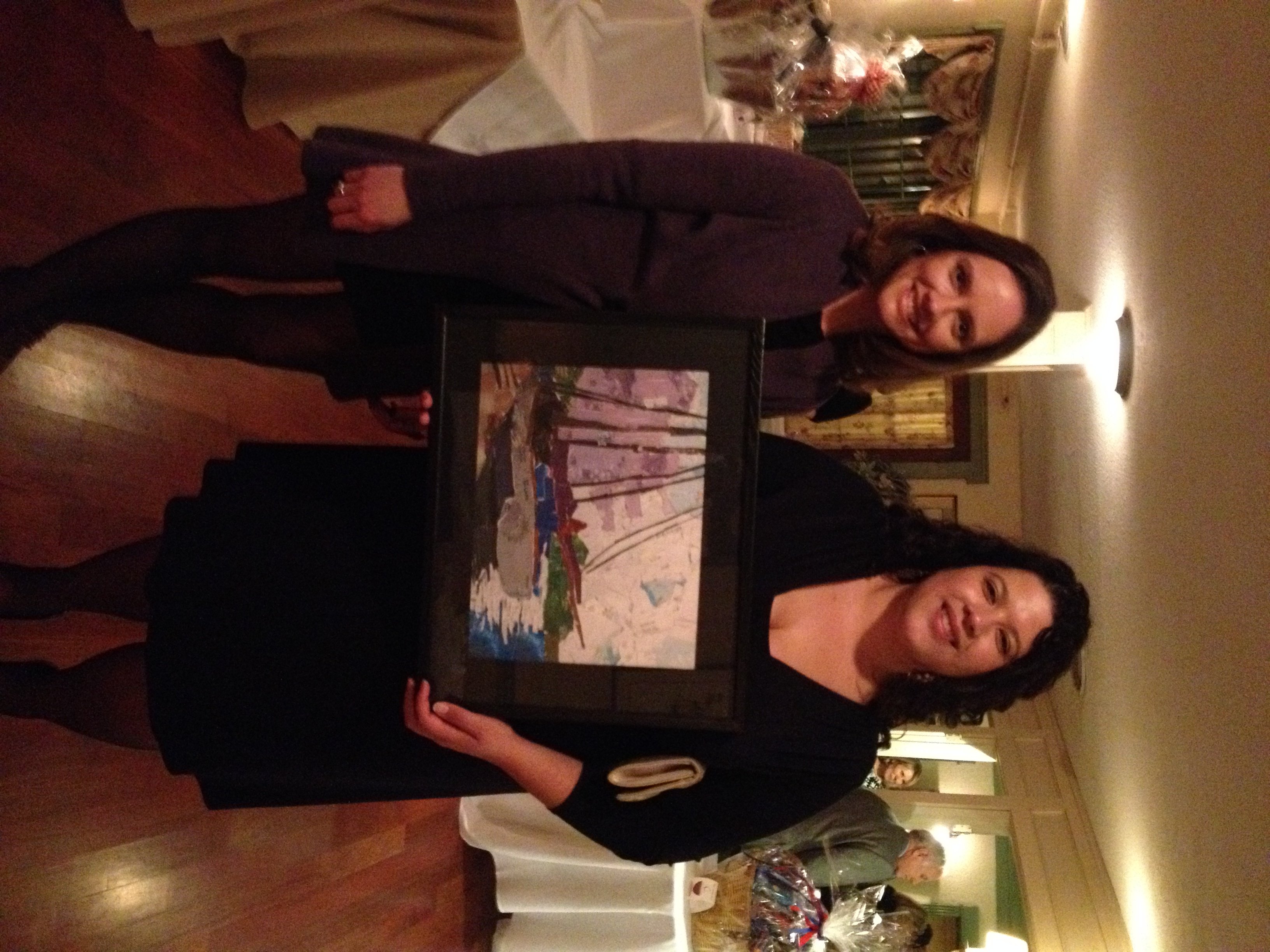 Creative Endeavors donated a print to the Gateway House of Peace Thanksgiving Gala which was held on November 13.  The torn cardboard collaborative piece entitled “Boating” was won by Bernadette Vandeinse, who is the BSBPA Interim President.  She was the first person to bid on the print and kept going back to increase her bid.  Bernadette, on the right holding the print, is with her friend Stacie Dina who is coincidentally a new member of our White Party Gala Committee.
