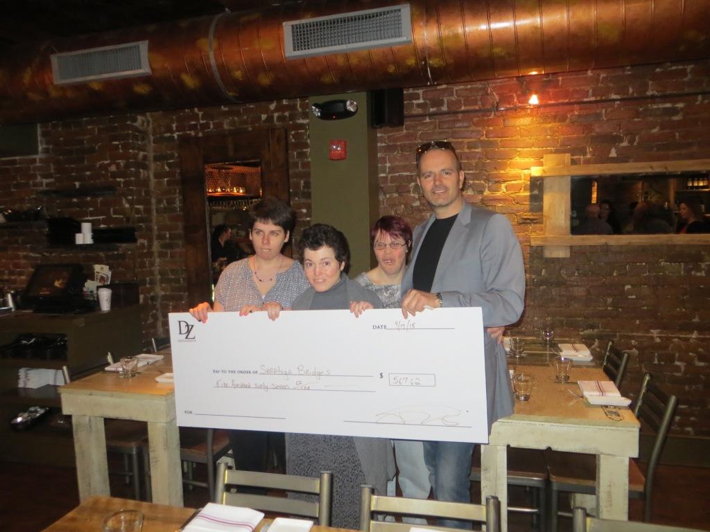 Through the DZ Restaurants “Raising Dough: Social Responsibility” program they were able to make a contribution of $567 to Saratoga Bridges! We were the featured charity on Sunday, March 29th, 2015 at Forno Bistro.