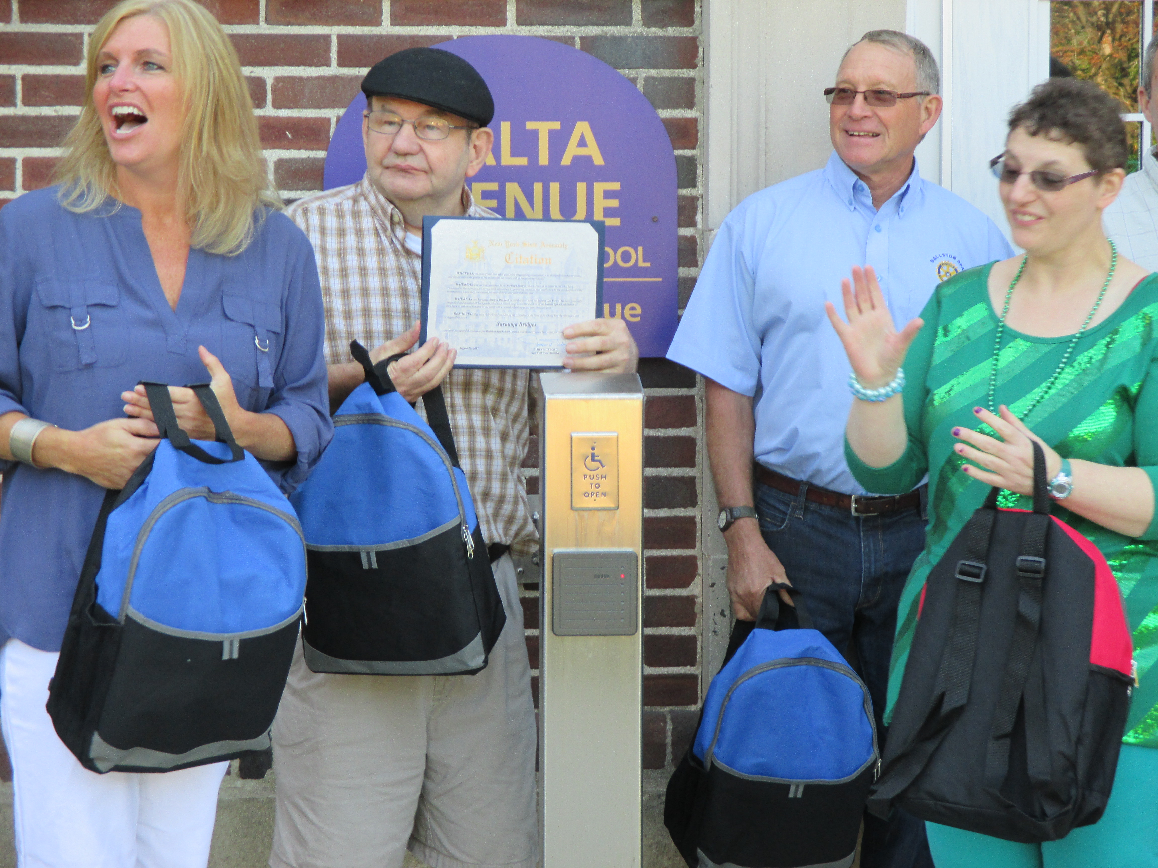 On Friday, August 28th, Assemblyman Jim Tedisco was at the Malta Avenue Elementary School with individuals from our Ballston Spa Day Program and members of the Ballston Spa Rotary Club to donate 55 backpacks filled with school supplies. These backpacks will give kindergartners a jumpstart on their school year.