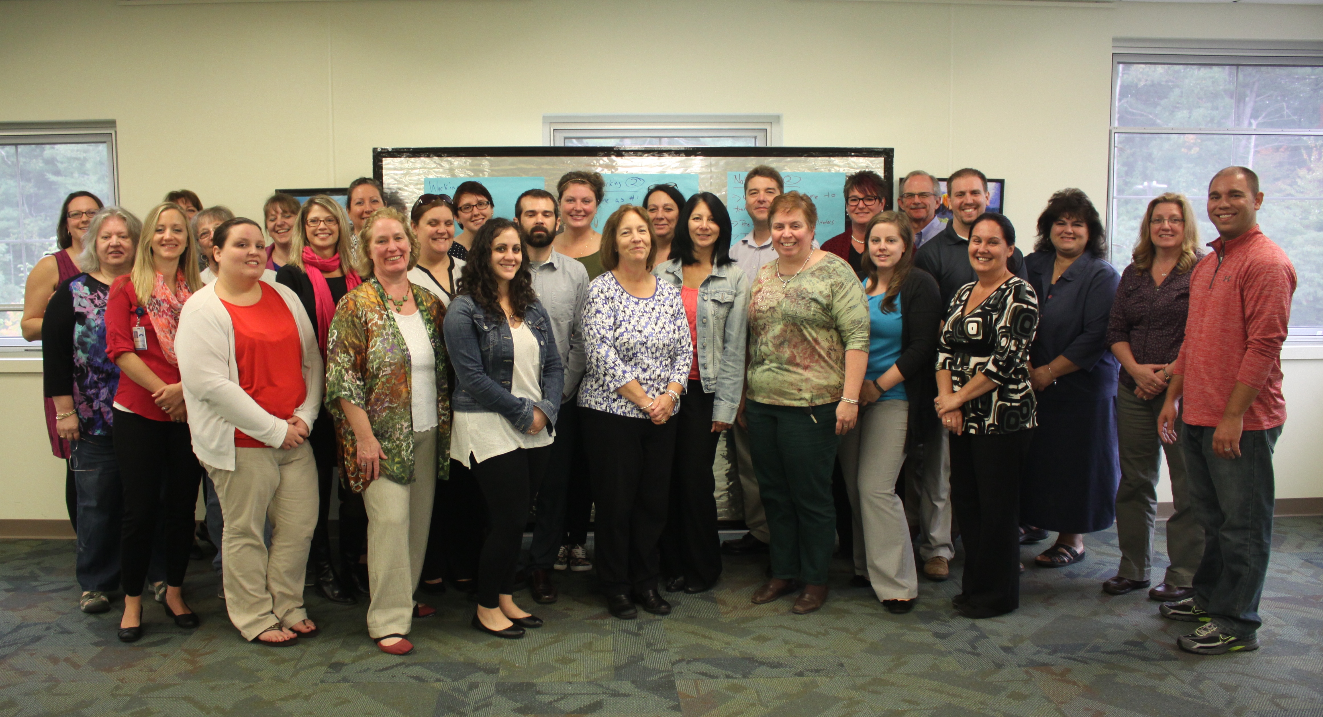 Here’s a great photo of staff members from Saratoga Bridges and our collaborative team from Schenectady, Schoharie, Rensselaer, Fulton and Montgomery ARC’s. It was taken last week in our building. We all have been working together on an OPWDD Balancing Incentive Program (BIP) grant project entitled ‘Using Person Centered Planning to Fulfill Personal Outcomes and Achieve System Transformation’. This grant has allowed us to train our staff in Council on Quality Leadership (CQL) and Framework for Planning. As a result, our staff is being trained to incorporate an enhanced person-centered process and culture.