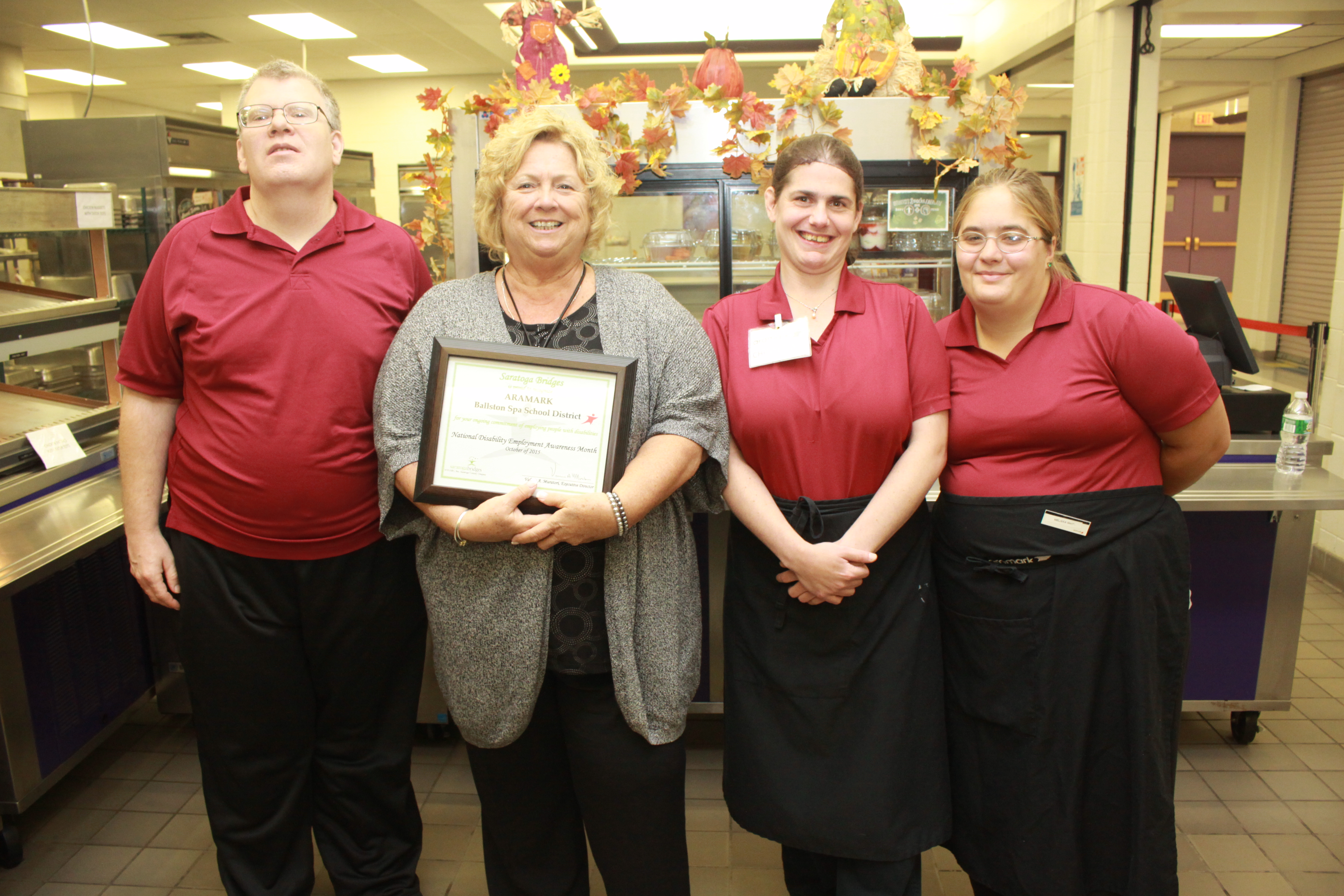 As we continue celebrate National Disability Employment Awareness Month (NDEAM) during October, we also recognized Aramark, who has a Food Service contract throughout the Ballston Spa Central School District, as another business partner who understands and embraces the benefits of hiring and training people with disabilities.