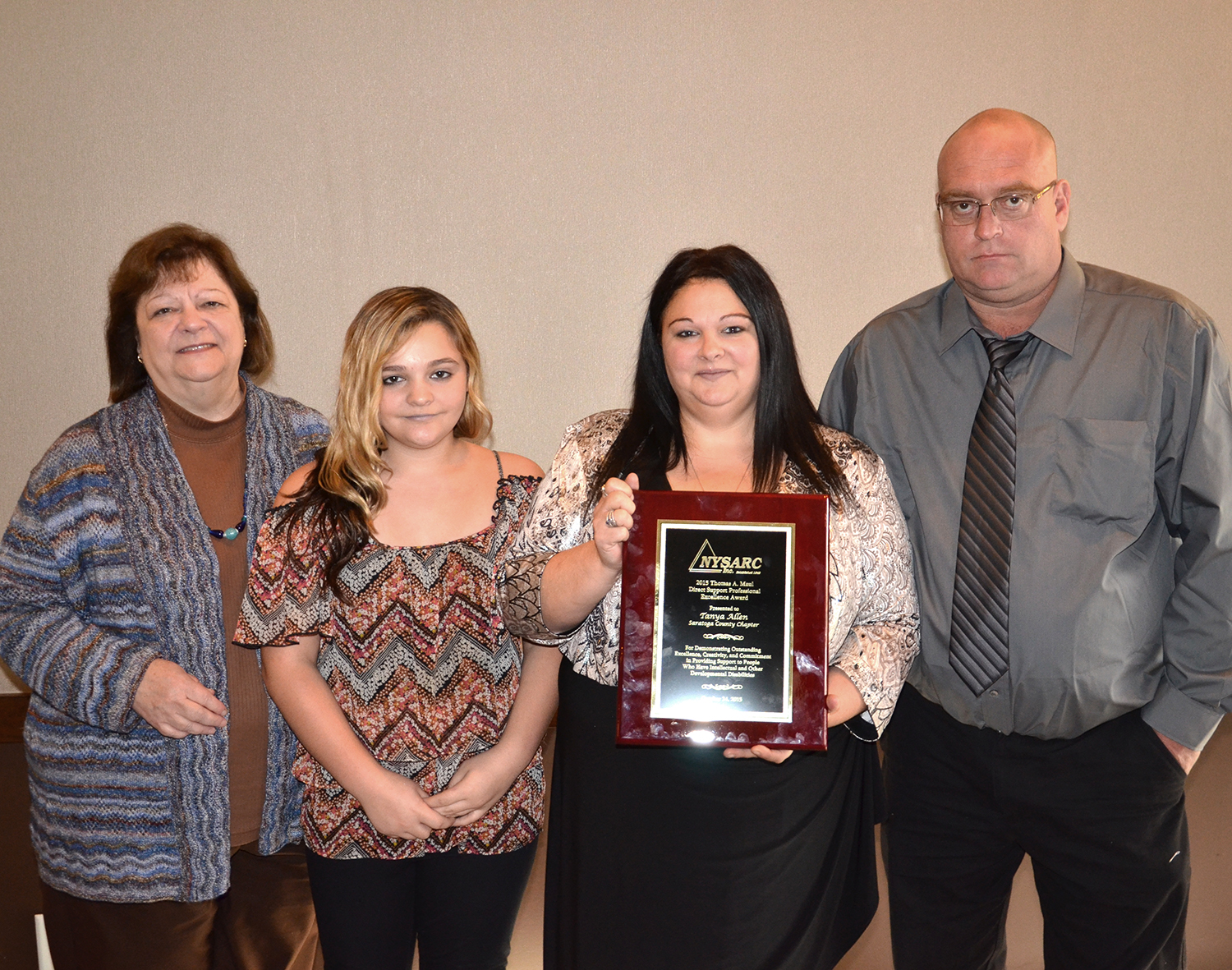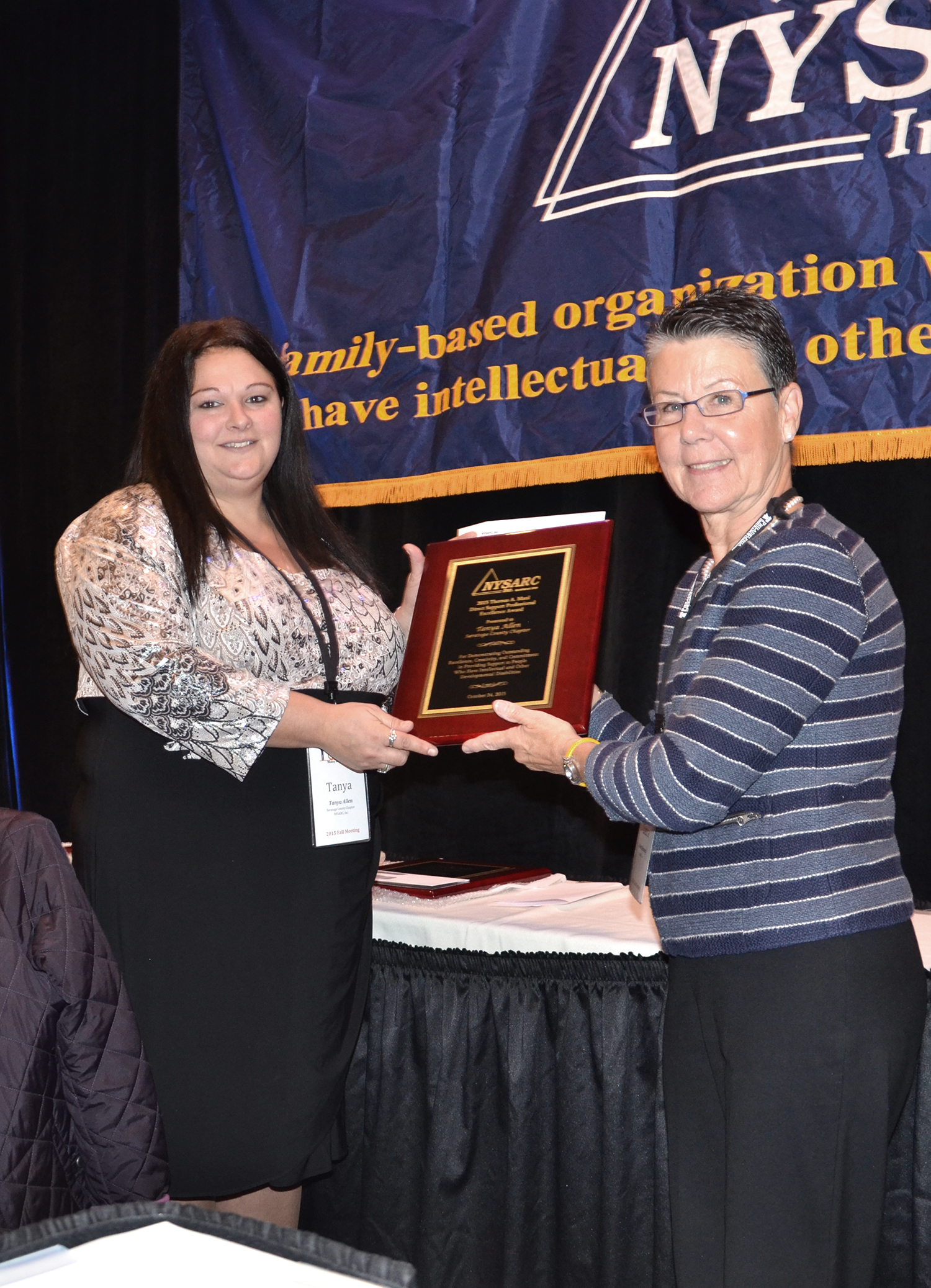 Tanya, Day Habilitation Instructor at our McGregor Day Program, received the 2015 Thomas A. Maul Direct Support Professional Excellence Award. This recognition is in honor of Thomas A. Maul, who during his tenure as OMRDD Commissioner addressed many of the long standing issues NYSARC Chapters face. Tanya received one of the 4 NYSARC region awards because she consistently demonstrates excellence, creativity and commitment to the people we support.