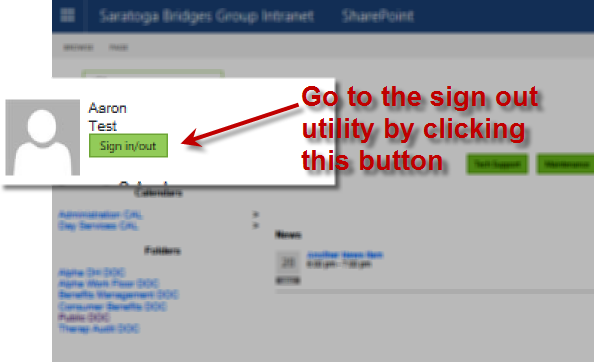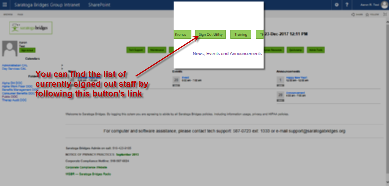 Open the sign out listing using the Sign Out Utility button shown above, then locate your name on the table: